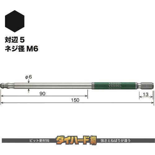 【CAINZ-DASH】ベッセル 剛彩ビット (片頭ボールポイント) 対辺5×150mm GSBP050L【別送品】