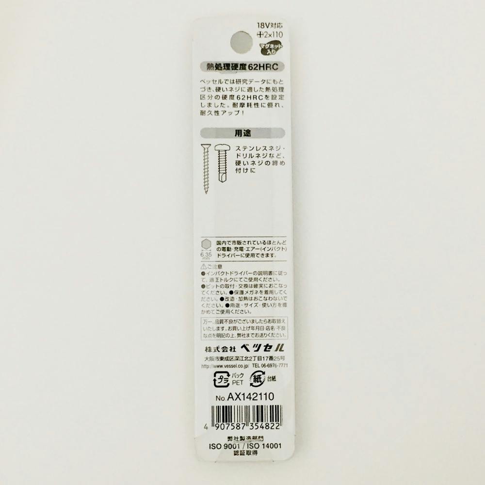 ベッセル VESSEL 高硬度ビット 両頭 AX142110 +2×110mm 2本組(販売終了)