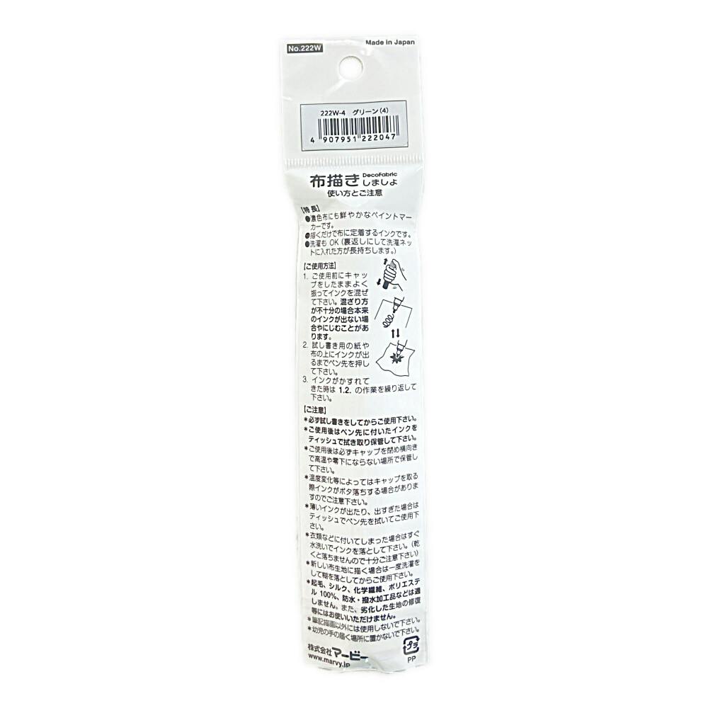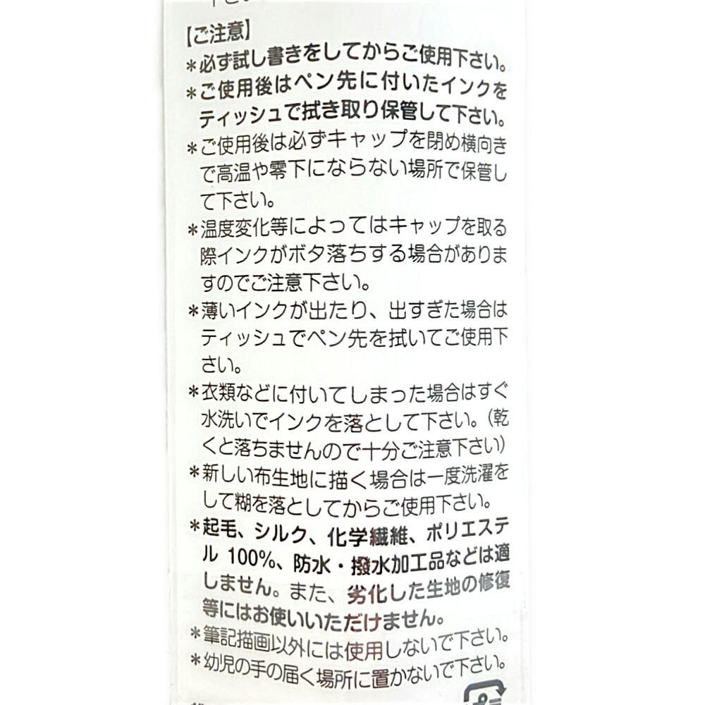 ●濃色布にも鮮やかなペイントマーカーです。●描くだけで布に定着するインクです。●洗濯もOK(裏返しにして洗濯ネットに入れた方が長持ちします。)●筆記幅/中字・約2mm