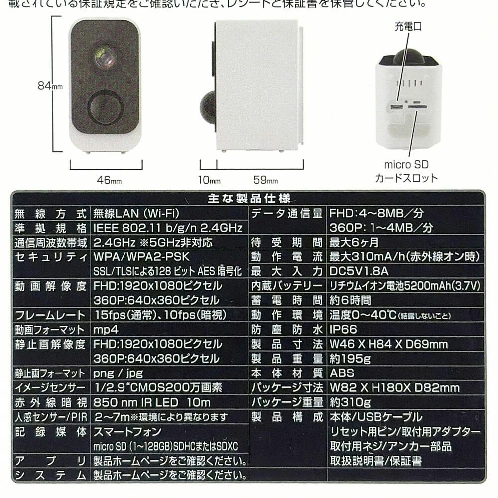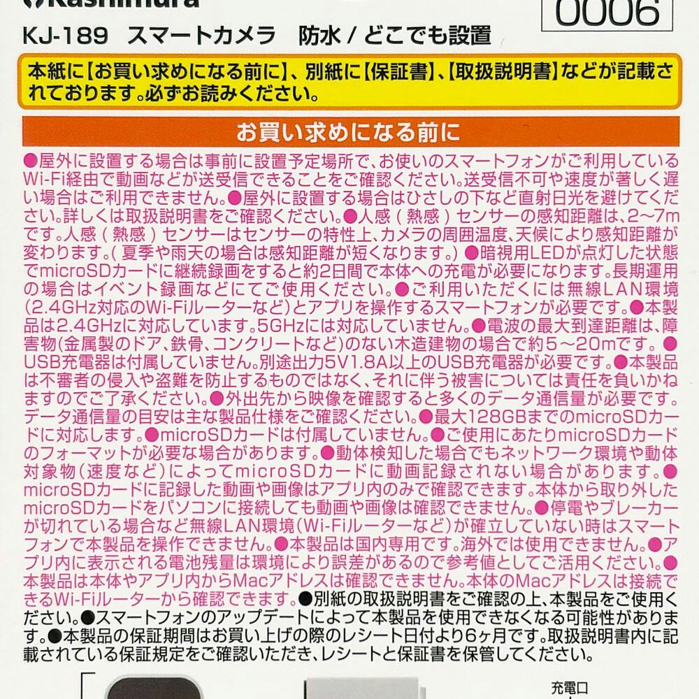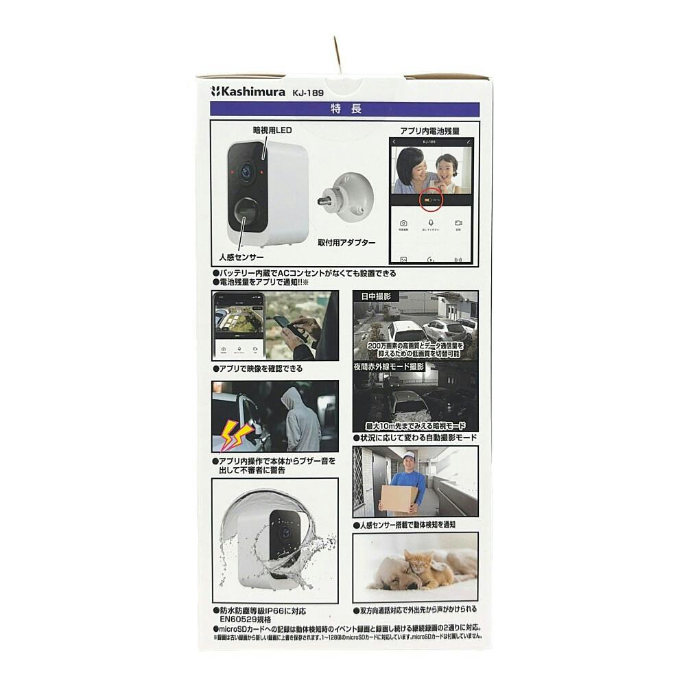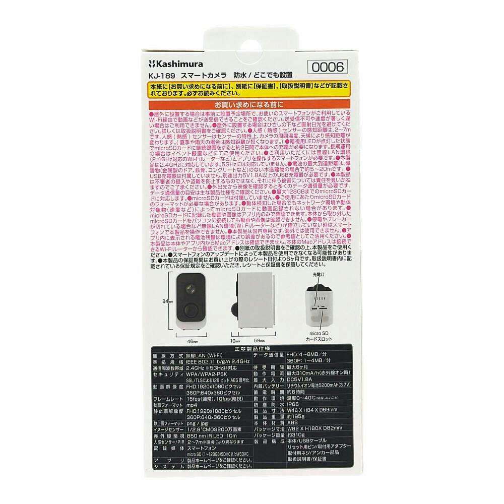 カシムラ スマートカメラ 防水 どこでも設置 KJ-189 防犯カメラ 外出先スマホで映像確認可能 200万画素 バッテリー内蔵 Wi-Fi対応