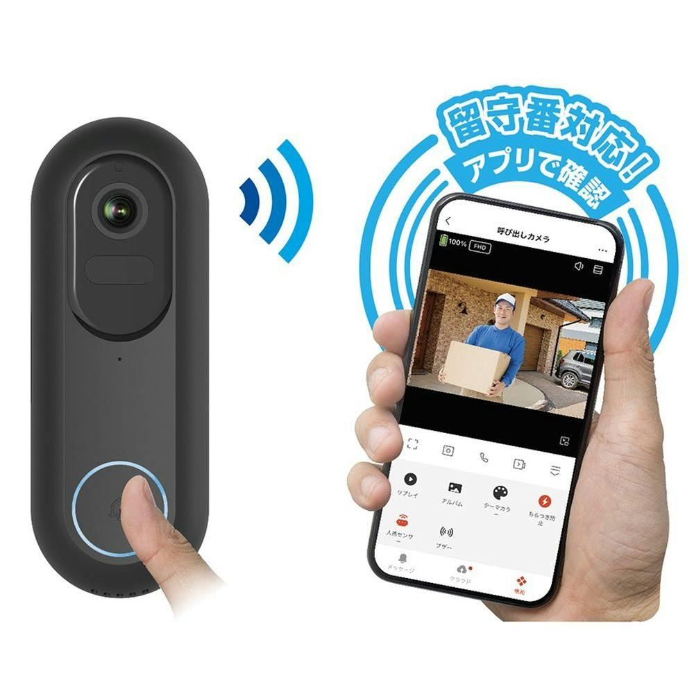 ボタンで呼出、外出先からスマホで応答、動画記録可能な呼び出しカメラ。