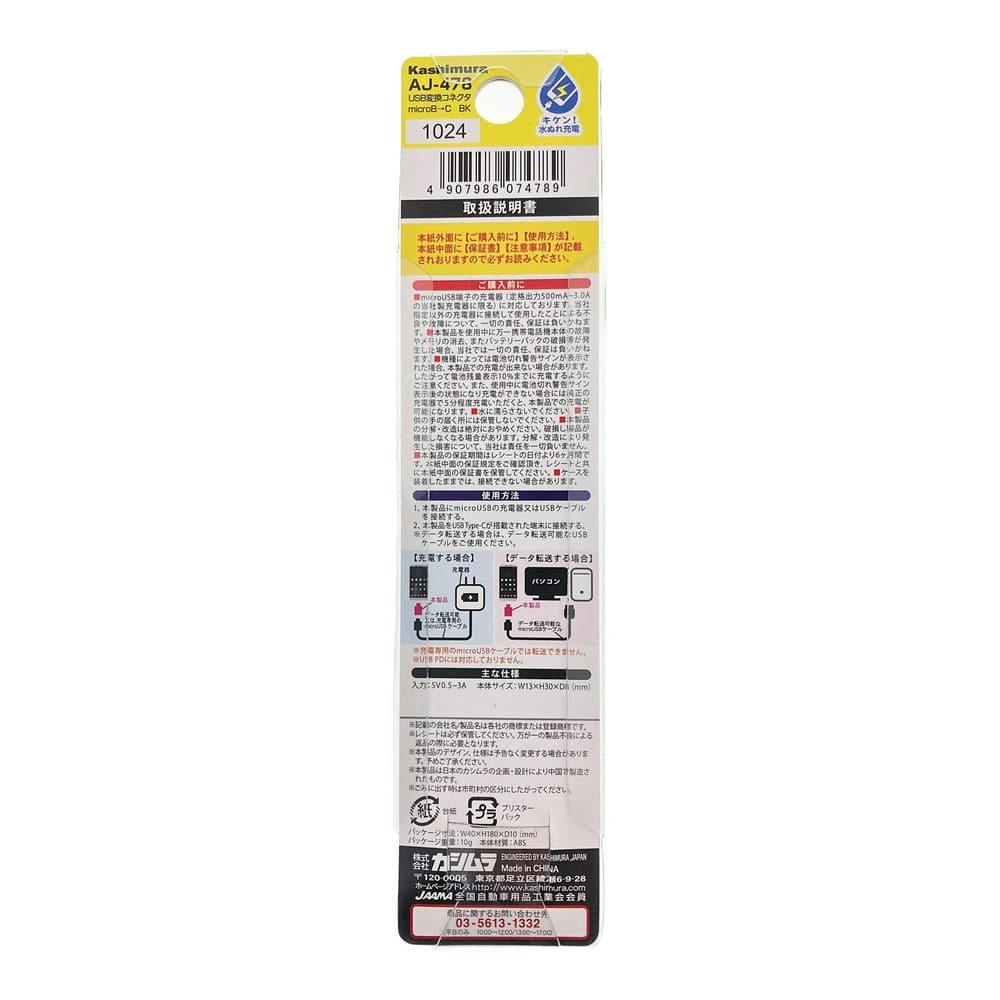 カシムラ USB変換コネクタ microB-C ブラック AJ-478