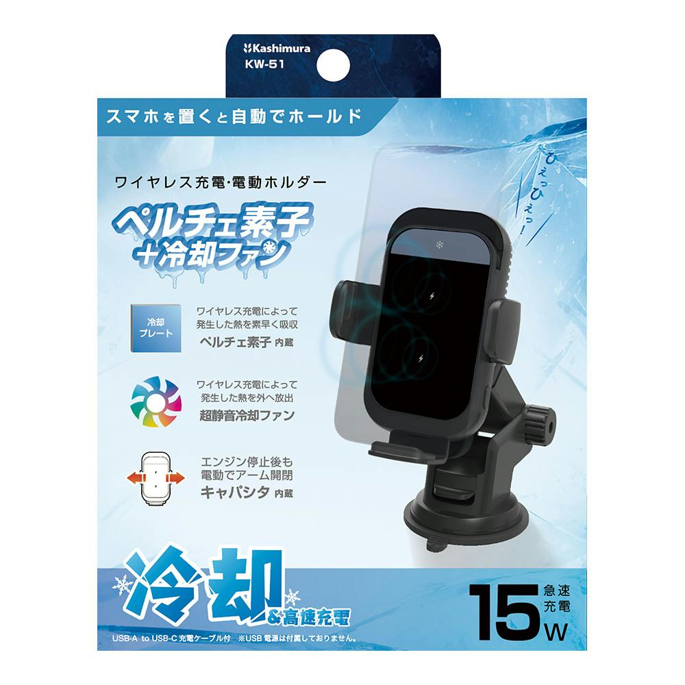 カシムラ 自動開閉式 ワイヤレス充電ホルダー 冷却機能 吸盤取り付け KW-51