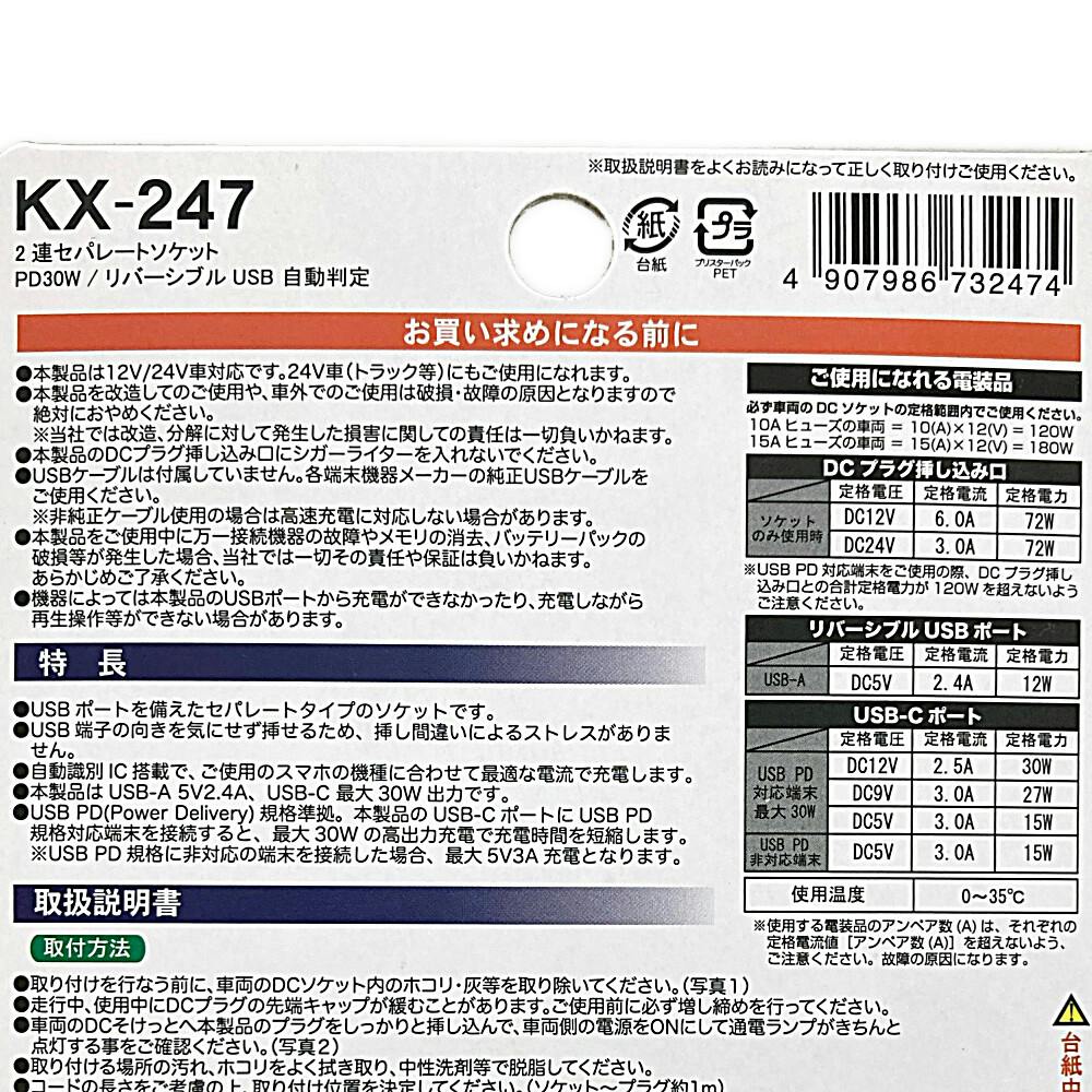 • カシムラ 2連セパレートトソケット PD30W/リバーシブルUSB自動判定 KX-247