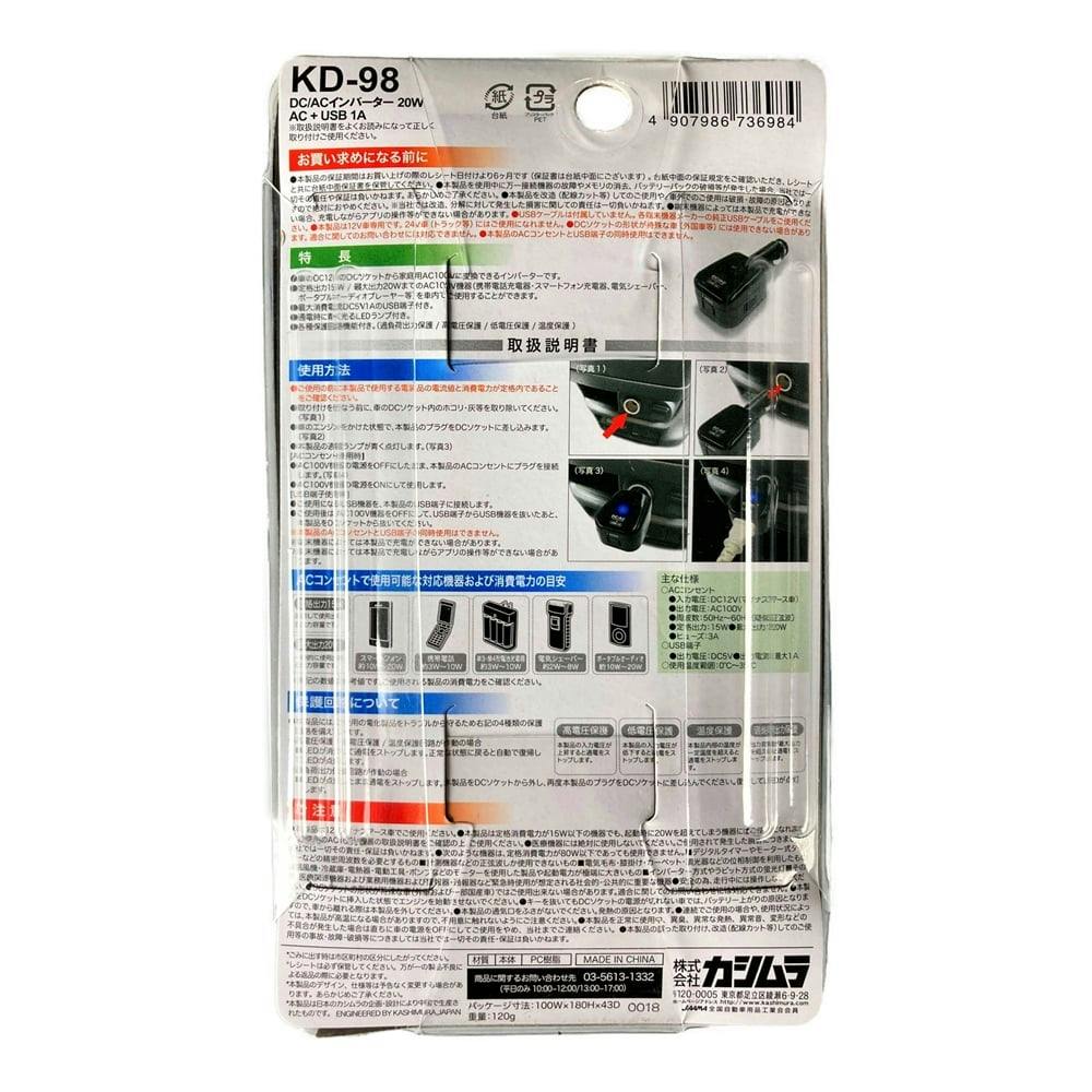 カシムラ DC/ACインバーター 20W AC+USB 1A KD-98