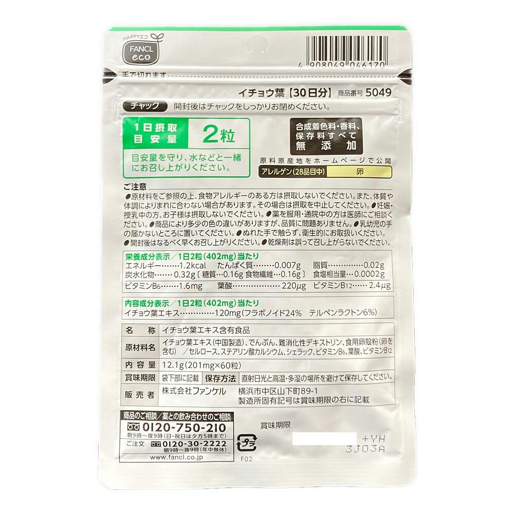 ●体内への効率を第一に考えています●流れに着目した健康パワー●健康補助食品●30日分●丸型タブレット●合成着色料・香料、保存料すべて無添加●内容成分表示/1日2粒(402mg)当たり イチョウ葉エキス:120mg(フラボノイド24%、テルペンラクトン6%)