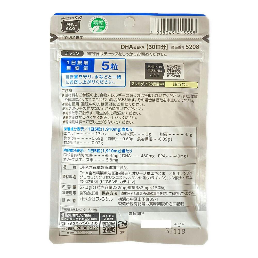 ●体内への効率を第一に考えています●青魚成分を酸化から守って届ける●30日分●自己乳化製法●植物由来ソフトカプセル●健康補助食品●内容成分表示/1日5粒当たり DHA含有精製魚油:984mg、DHA:460mg、EPA:40mg、オリーブ葉エキス末:5.8mg