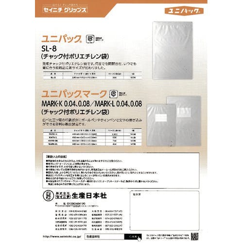 【CAINZ-DASH】生産日本社 チャック付ポリ袋 ユニパック MARK-K 透明 縦400×横280×厚さ0.04mm 100枚入 MARK-K【別送品】
