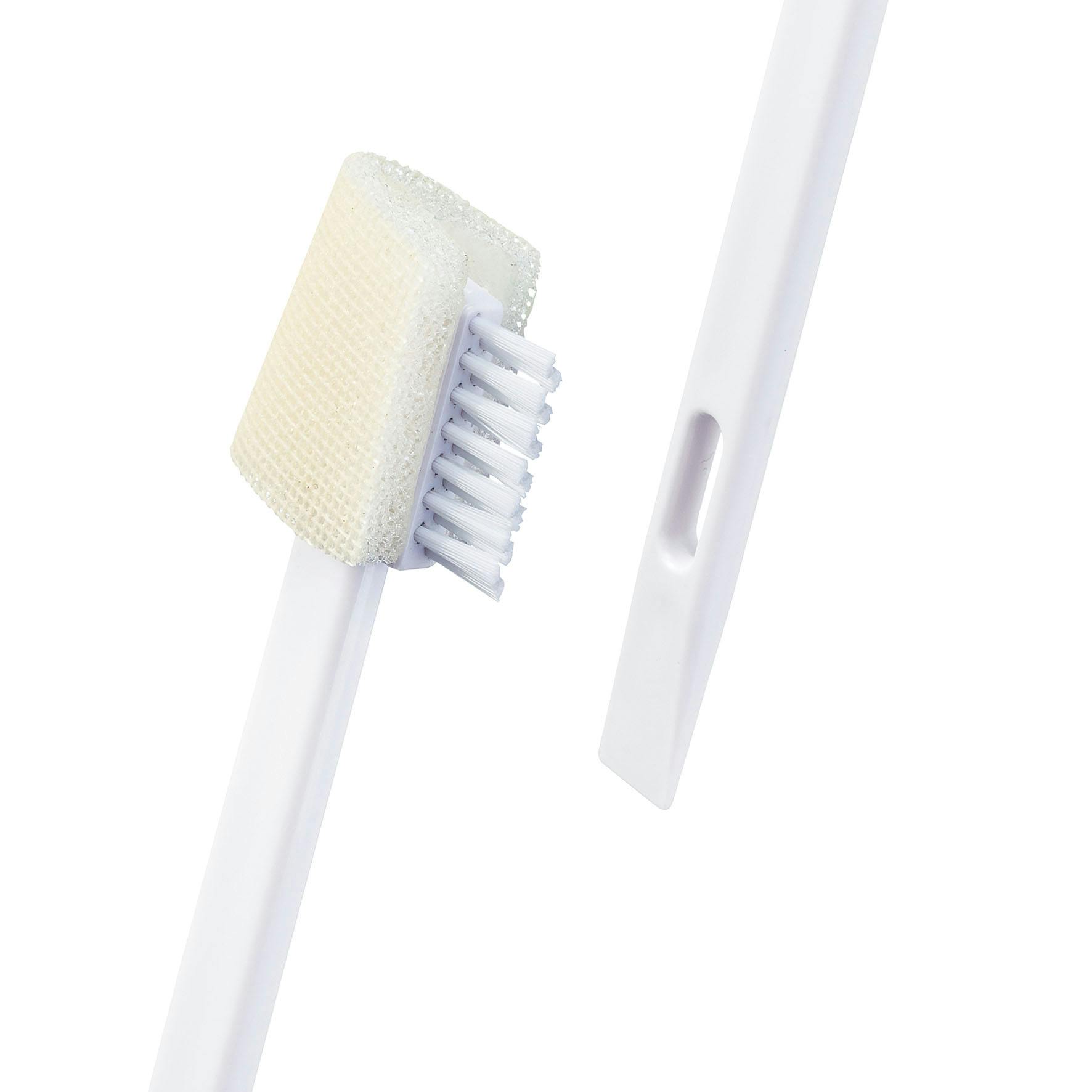 すみを洗えるミニブラシ付きです。こすり落としに便利なヘラ付きです。