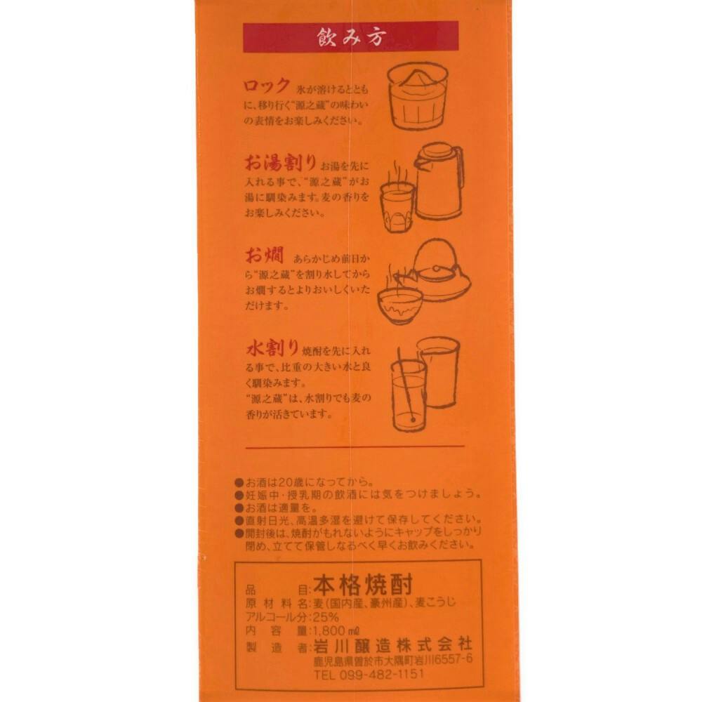 (鹿児島源之蔵 麦 25度 乙 パック 1800ml
