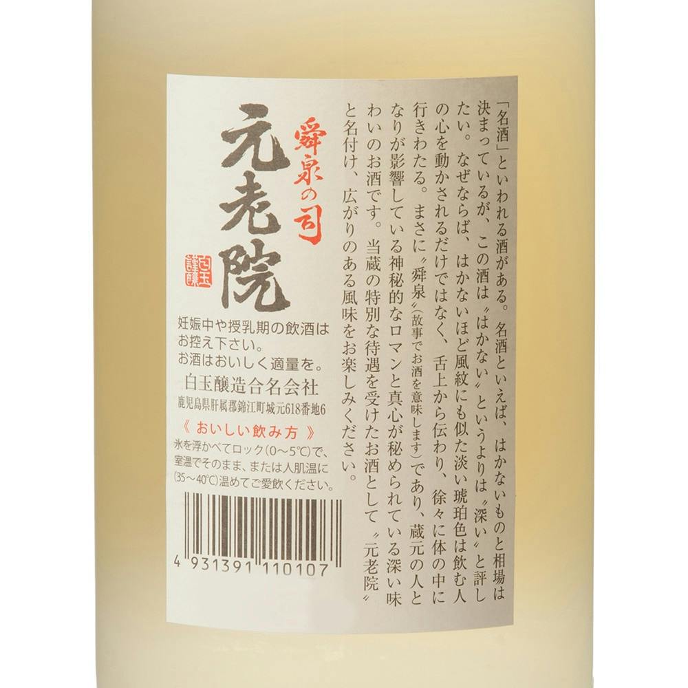 特別な待遇を受けた焼酎として「元老院」と名付けられました。樫樽貯蔵の麦焼酎をベースに芋焼酎をブレンドした、まろやかに仕上げられた焼酎です。