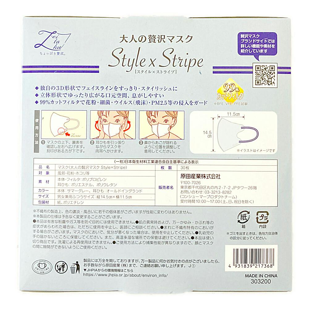 原田産業 大人の贅沢マスク Style×Stripe オールドイングランド サマーグレー 30枚入
