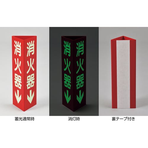 【CAINZ-DASH】日本緑十字社 消防標識 消火器↓ 三角柱・蓄光タイプ 消火器D(大) 300×100mm三角 エンビ 013104【別送品】