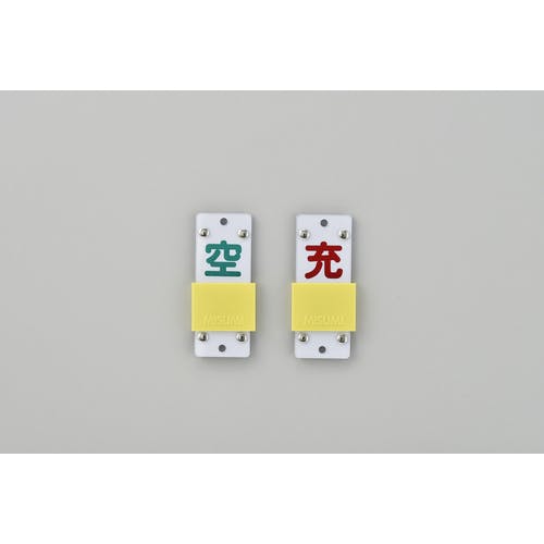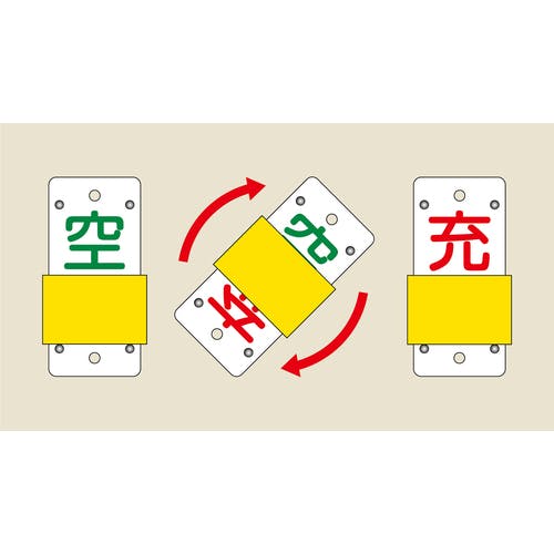【CAINZ-DASH】日本緑十字社 高圧ガス関係標識 ボンベ表示札・スライド式(充⇔空) 札-14B 90×35mm エンビ 042114【別送品】
