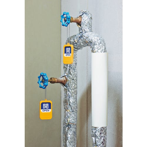 • 【CAINZ-DASH】日本緑十字社 回転式バルブ開閉札 開OPEN(青)⇔閉CLOSE(赤) 特15-360A 90×60mm 164091【別送品】