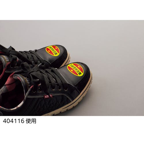 【CAINZ-DASH】日本緑十字社 つま先用注意喚起ステッカー(安全靴用) つまずき注意 STPS-16 30×50 蛍光エンビ 404116【別送品】