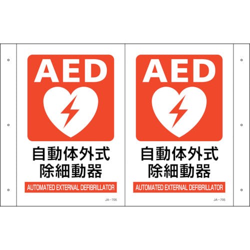 【CAINZ-DASH】日本緑十字社 折り曲げ標識 AED設置 JA-705 300×460(1面300×200) PET 392705【別送品】