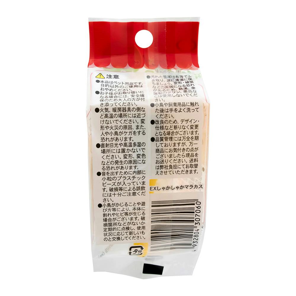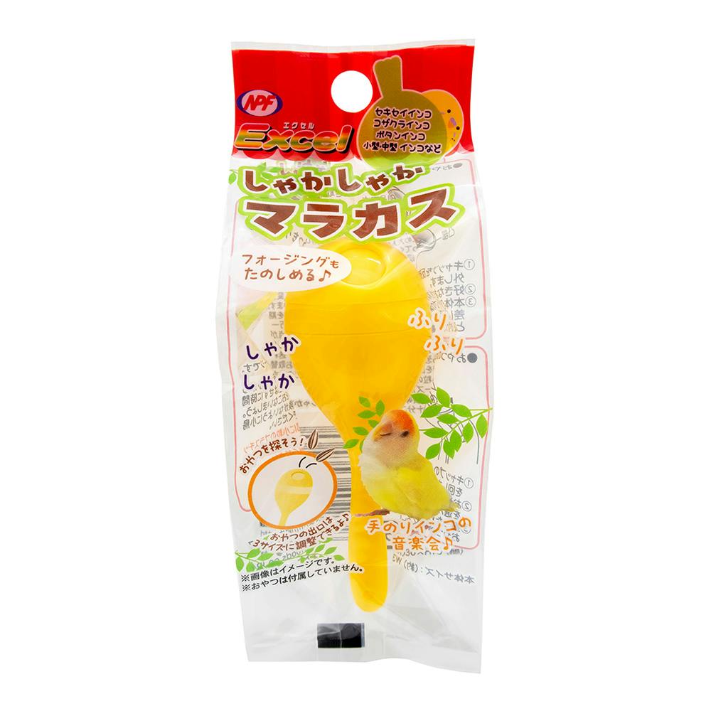 しゃかしゃかたのしい小鳥のマラカス。マラカスの中におやつを入れてフォージングもたのしめる♪