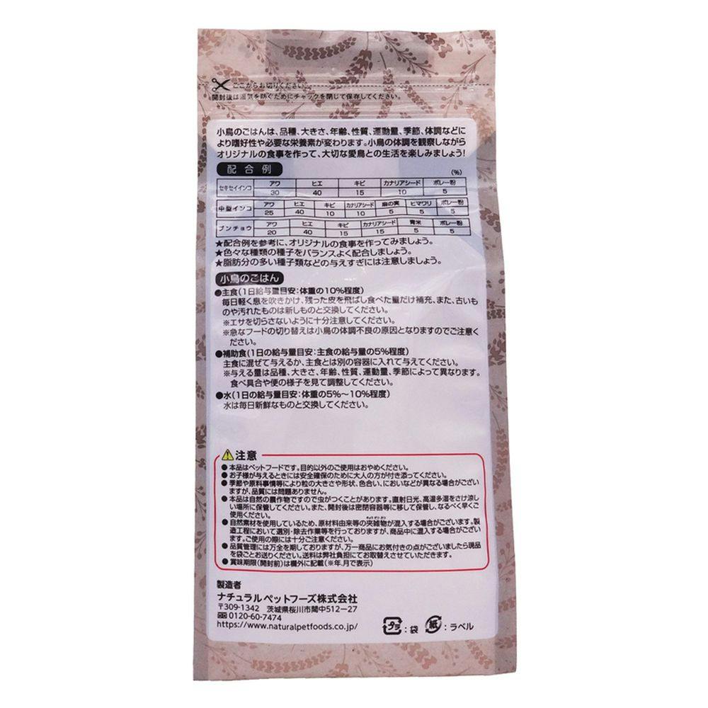 小鳥の基本素材。主食に混ぜるか、補助食としてご使用ください。