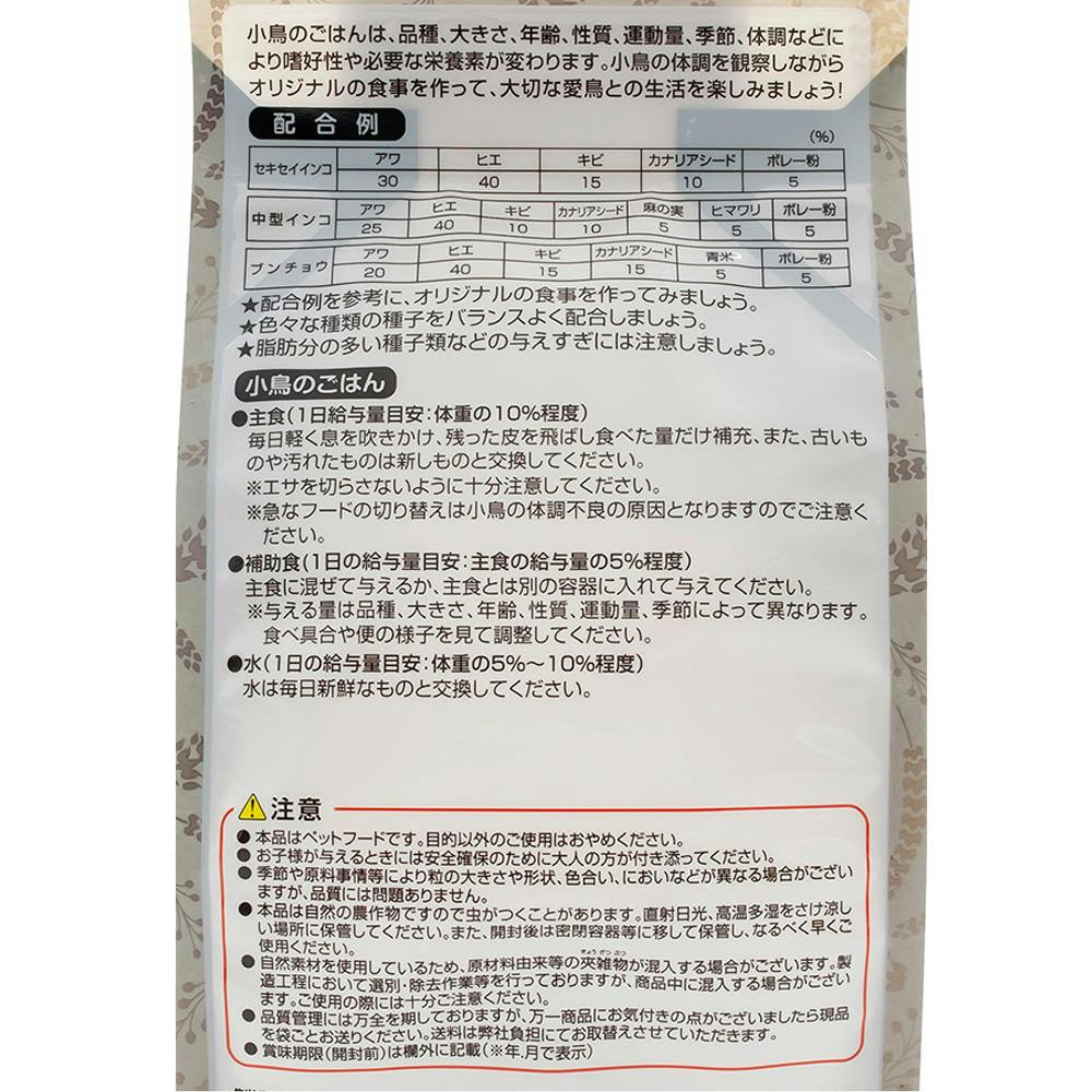 オリジナルの食事を作って、大切な愛鳥との生活を楽しみましょう!小鳥フードの基本素材。鉄分を多く含み栄養バランスに優れています。フィンチ類・インコ類など小鳥全般に。