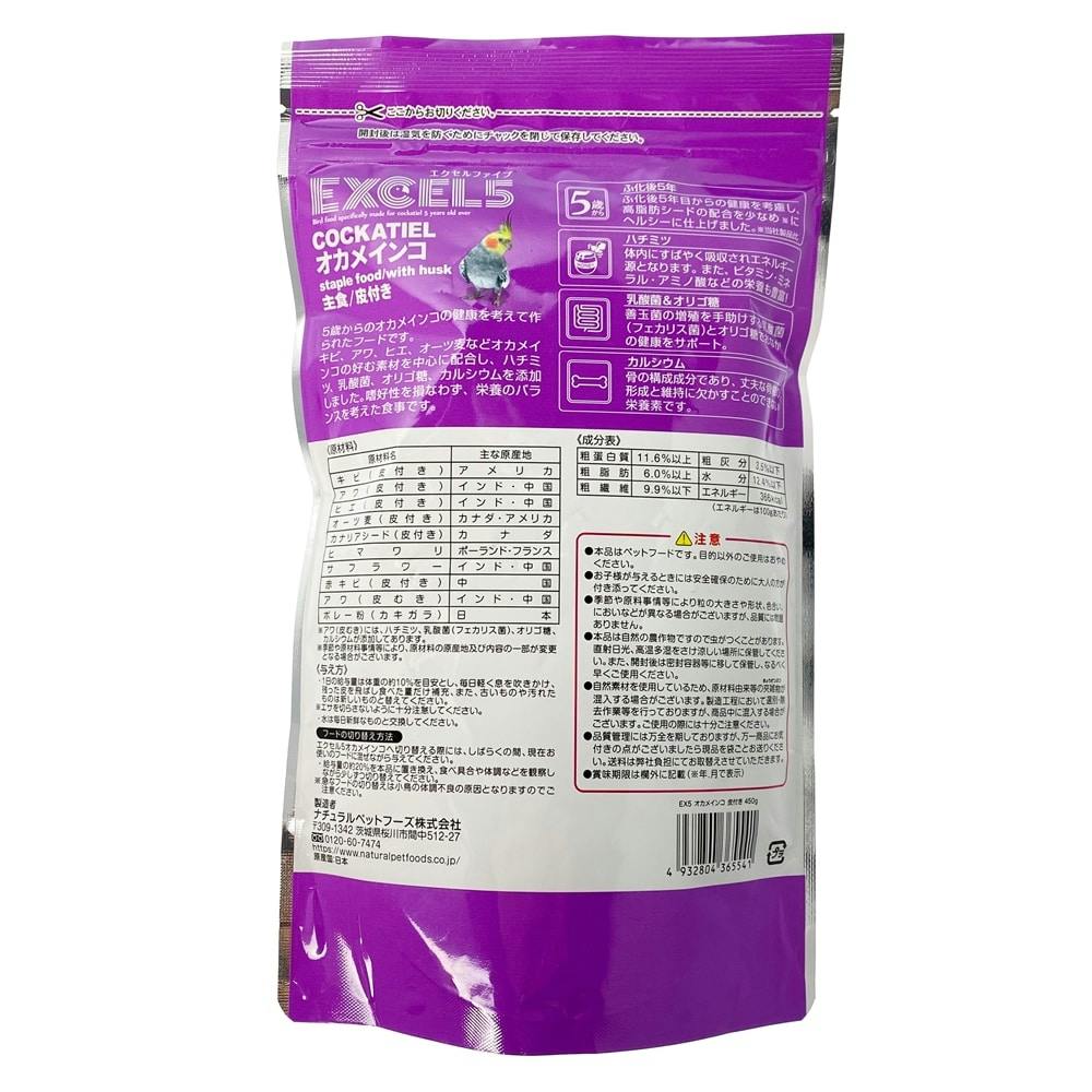 エクセル5 オカメインコ 皮付き 450g