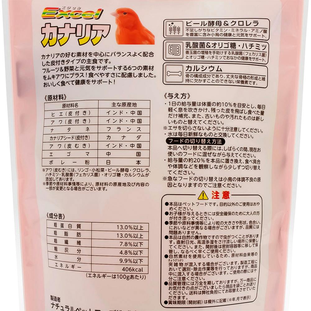 カナリアの好む素材を中心にバランスよく配合した皮付きタイプの主食です。フルーツ&野菜と元気をサポートする6つの素材をムキアワにプラス!食べやすさに配慮しました。おいしく食べて健康をサポート!