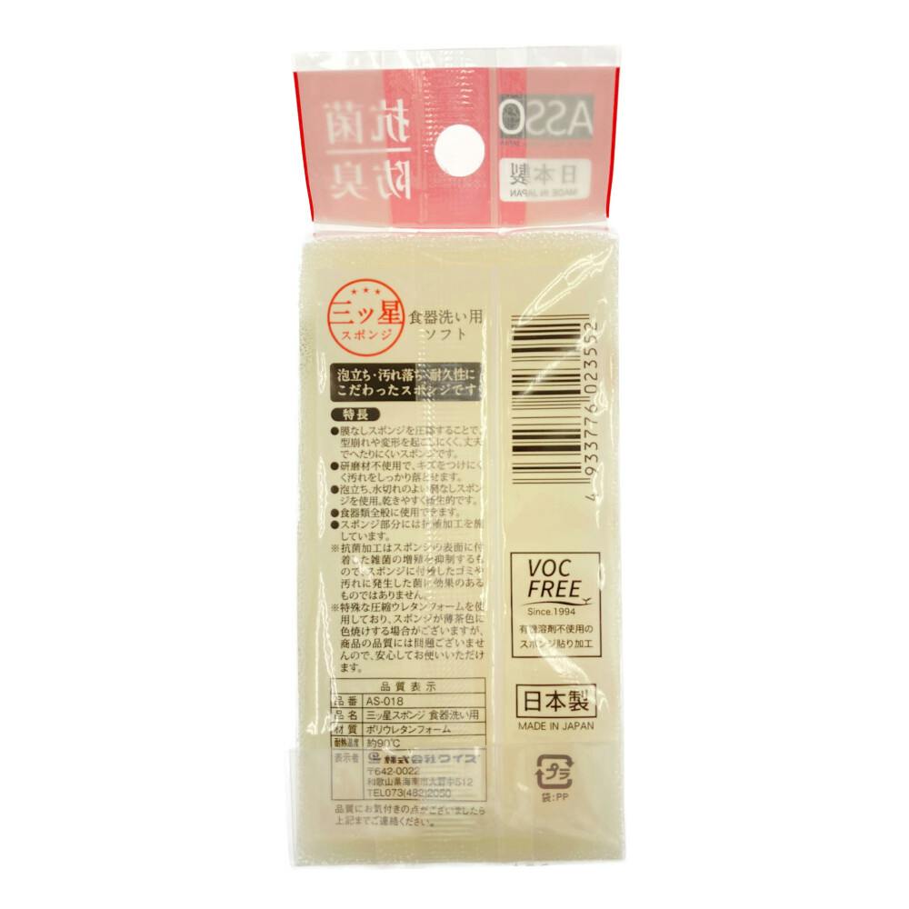 ASSO 三ツ星スポンジ 食器洗い用 白