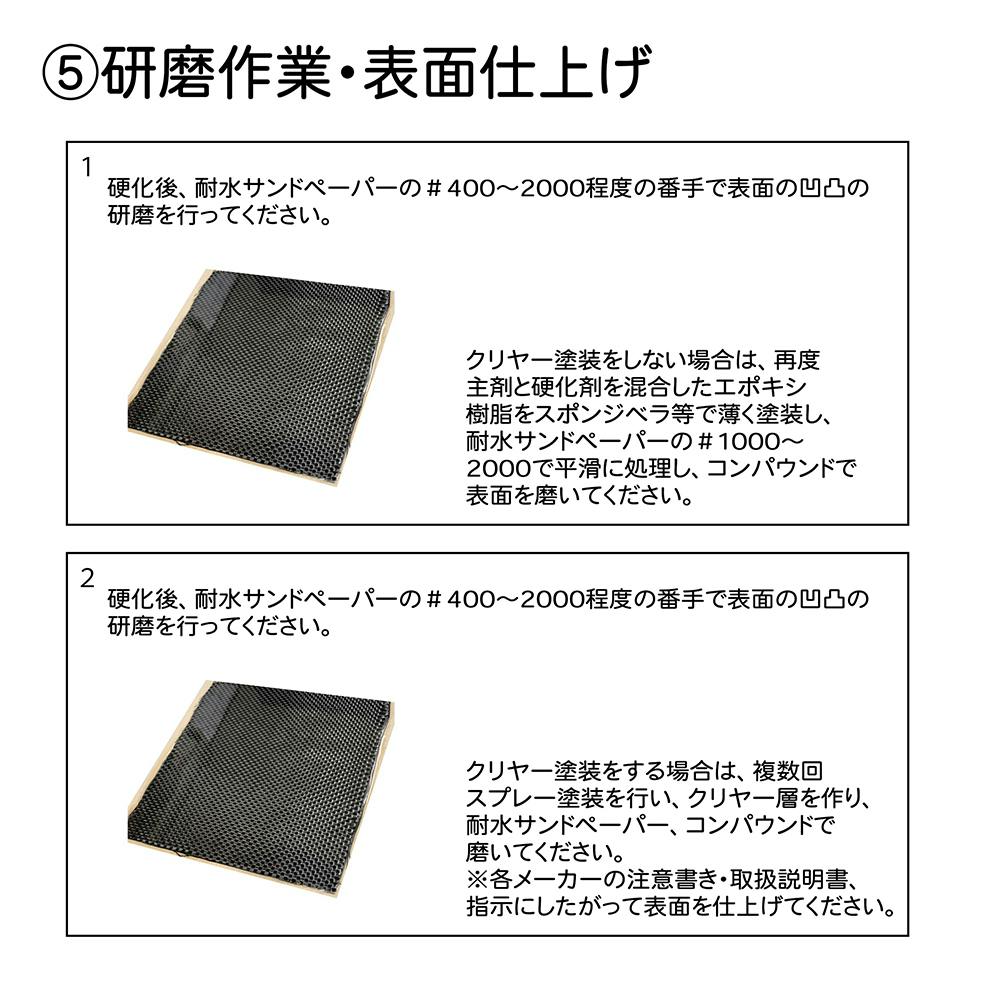 透明度が高く、硬化後の手離れが良いエポキシ樹脂です。低粘度タイプのため、カーボンクロスにしっかりと浸み込みます。