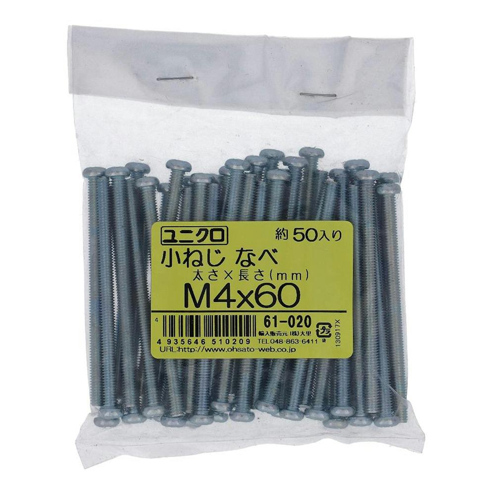 小ねじ なべ ユニクロ 61-020 M4×60mm 50本入 袋売