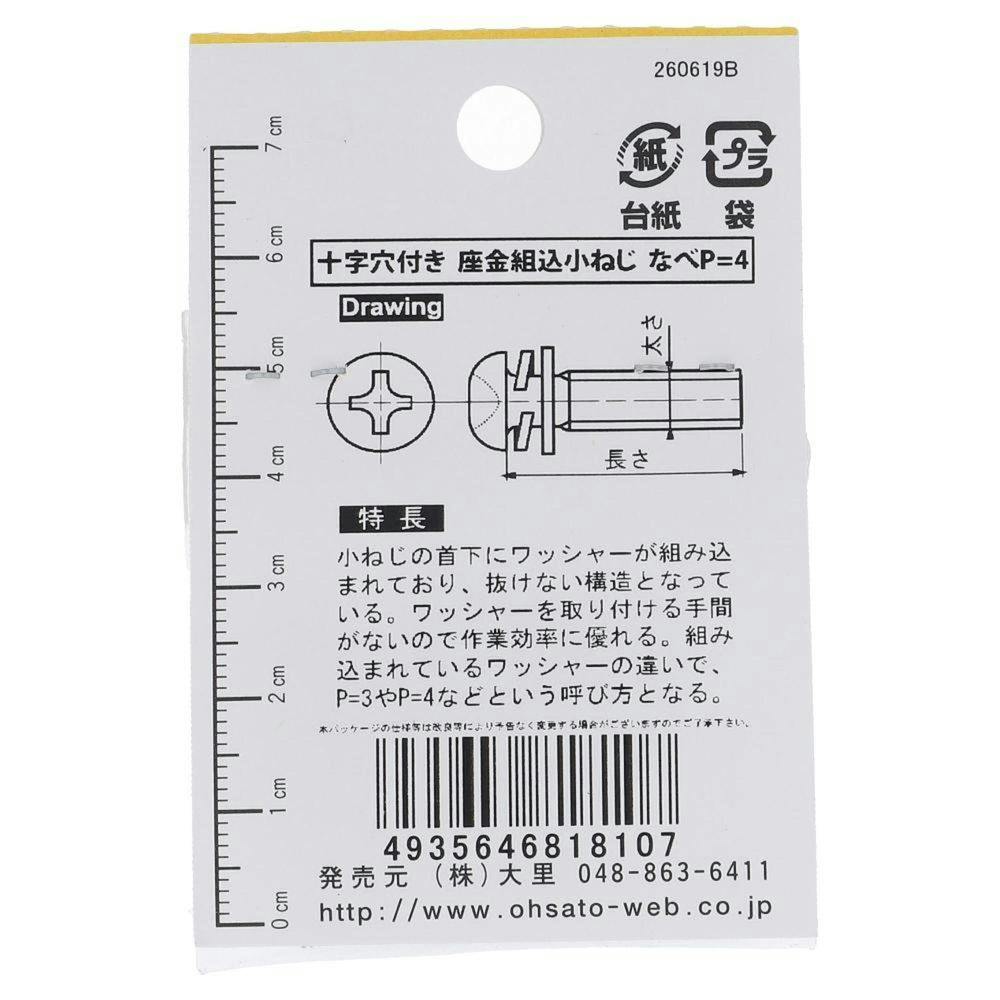 座金組込ねじ 鉄/ユニクロメッキ EO-310 P=4 M4×25mm 6本入 小袋