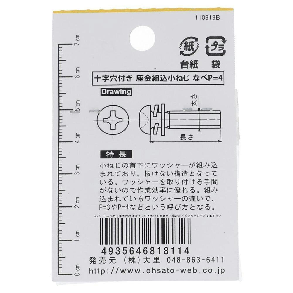 座金組込ねじ 鉄/ユニクロメッキ EO-311 P=4 M5×10mm 6本入 小袋