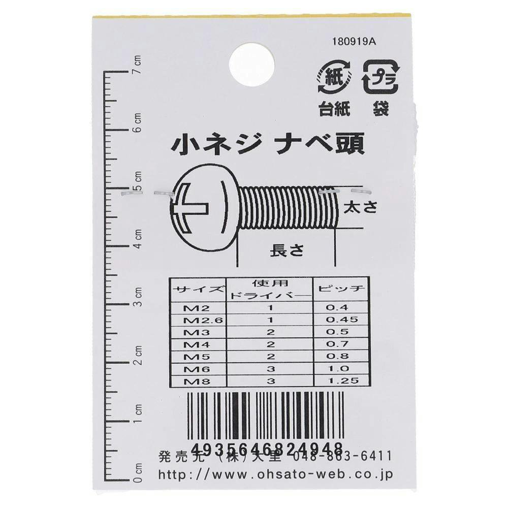 小ねじ なべ 鉄/ユニクロメッキ EO-494 2×8mm 8本入 小袋