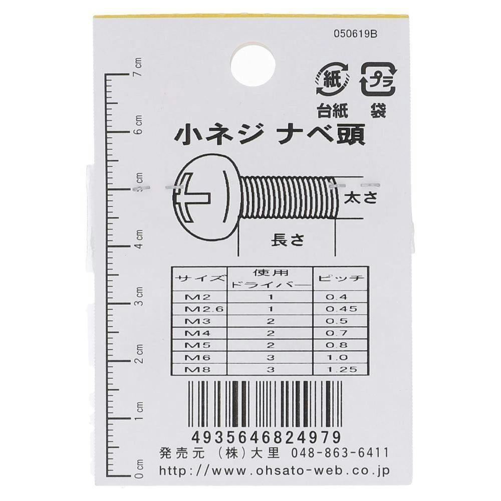 小ねじ なべ 鉄/ユニクロメッキ EO-497 2.6×6mm 8本入 小袋