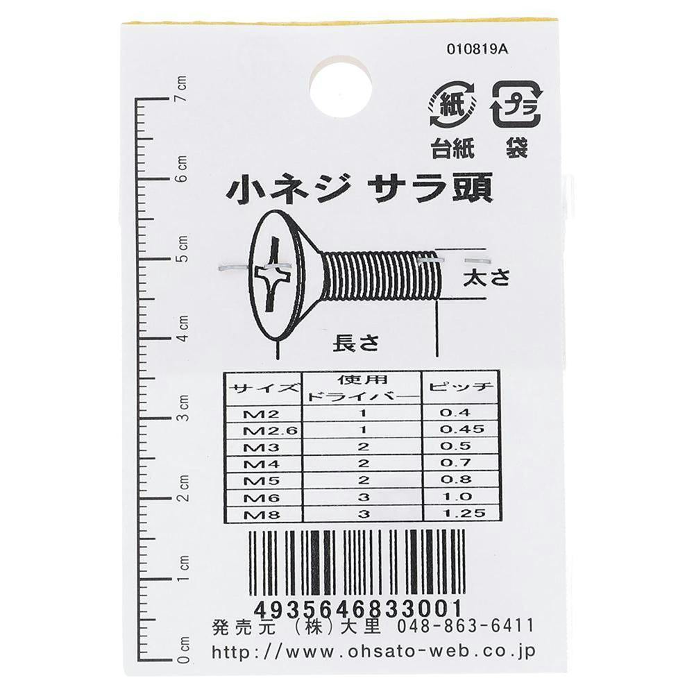 小ねじ 皿 鉄/ユニクロメッキ DO-300 2.6×20mm 6本入 小袋