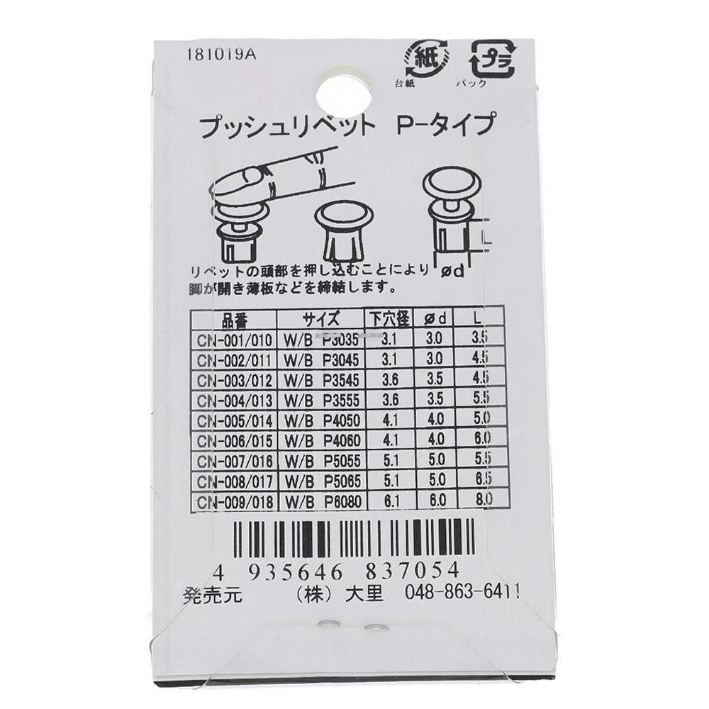 プッシュリベット P-type 白 W4050