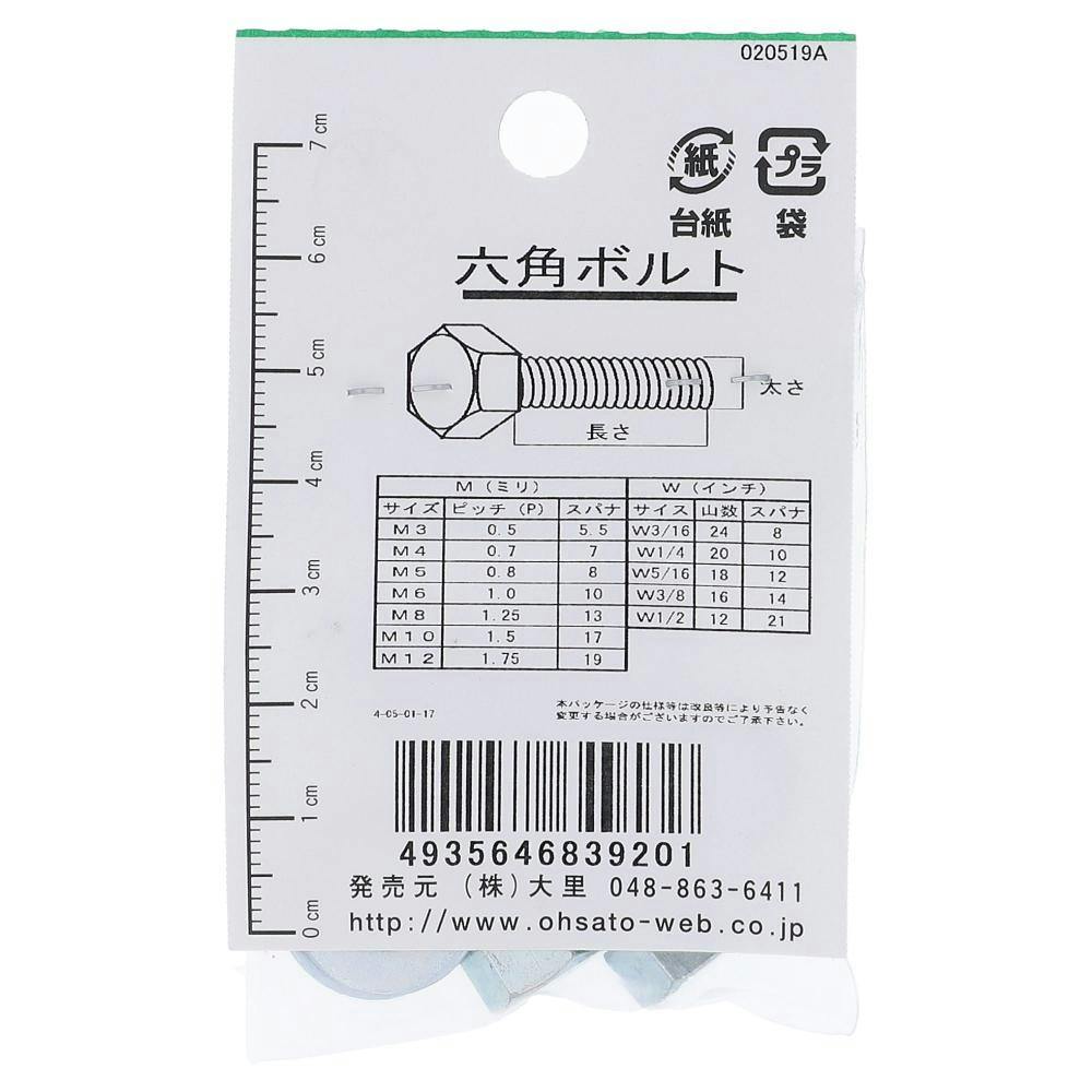 六角ボルト 鉄/ユニクロメッキ FO-220 W5/16×32mm 2入