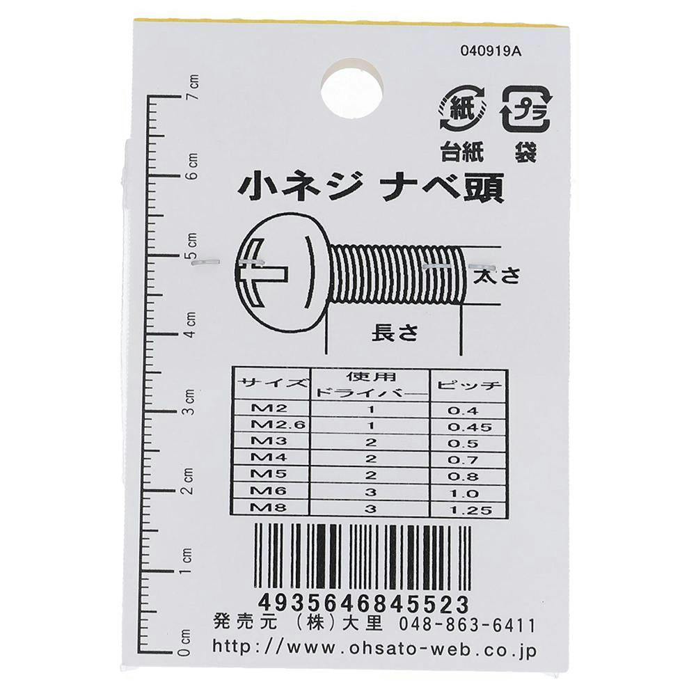 小ねじ なべ 鉄/ユニクロメッキ EO-552 3.5×20mm 10本入 小袋
