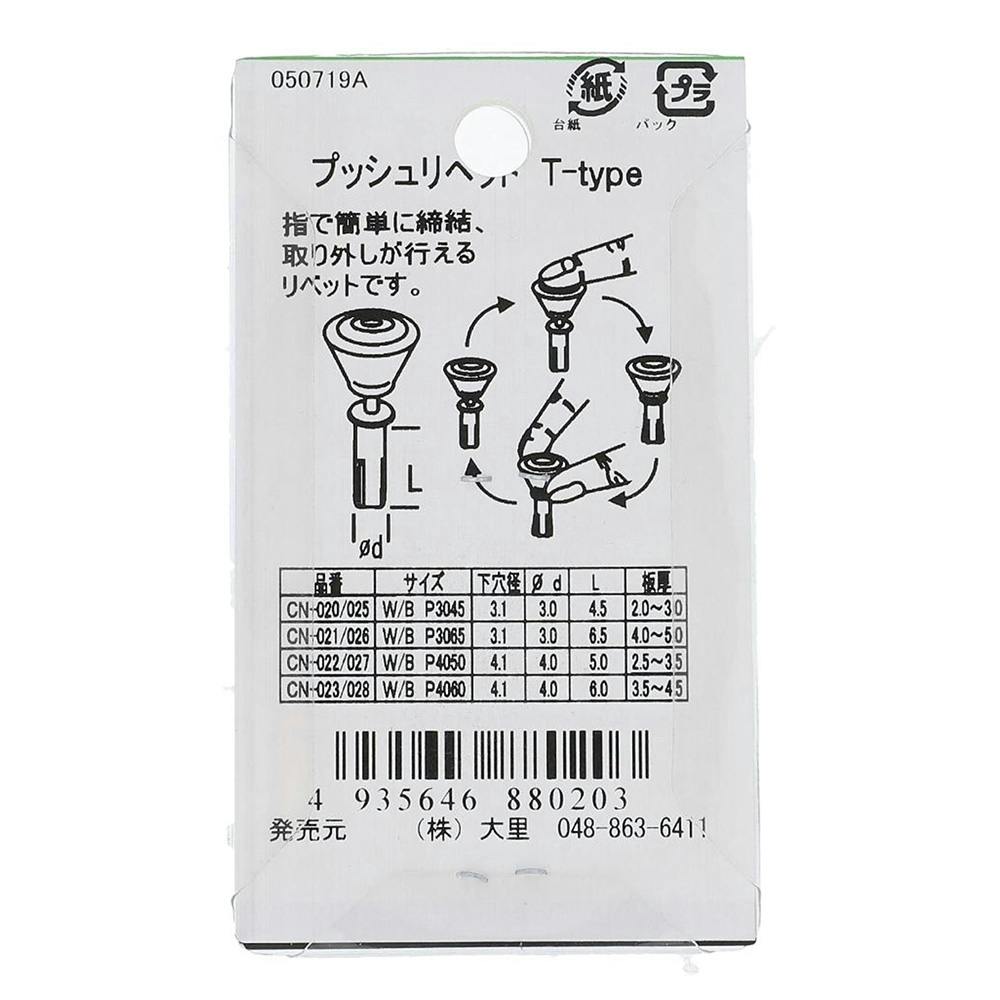 ●締結板厚・下穴径は、指定寸法を厳守して下さい。指定寸法外で、使用されますと、強度・挿入力に大きく影響致します。●リベット挿入時に、指を挟まないよう、十分注意してご使用ください。