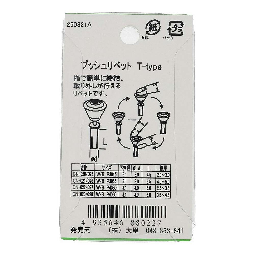 プッシュリベット T-type 白 W4050