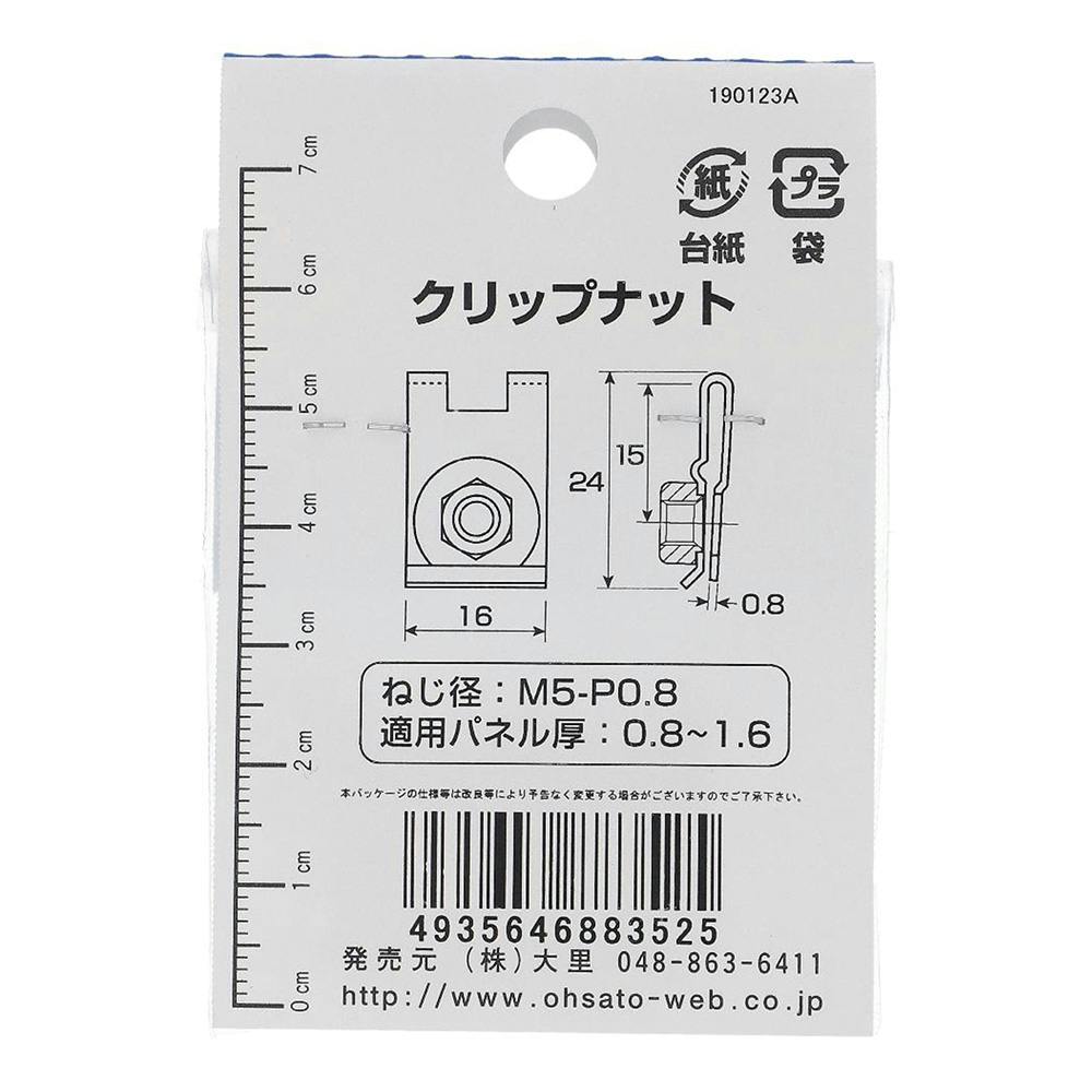 クリップナット 鉄/メッキ IO-352 M5mm 2本入