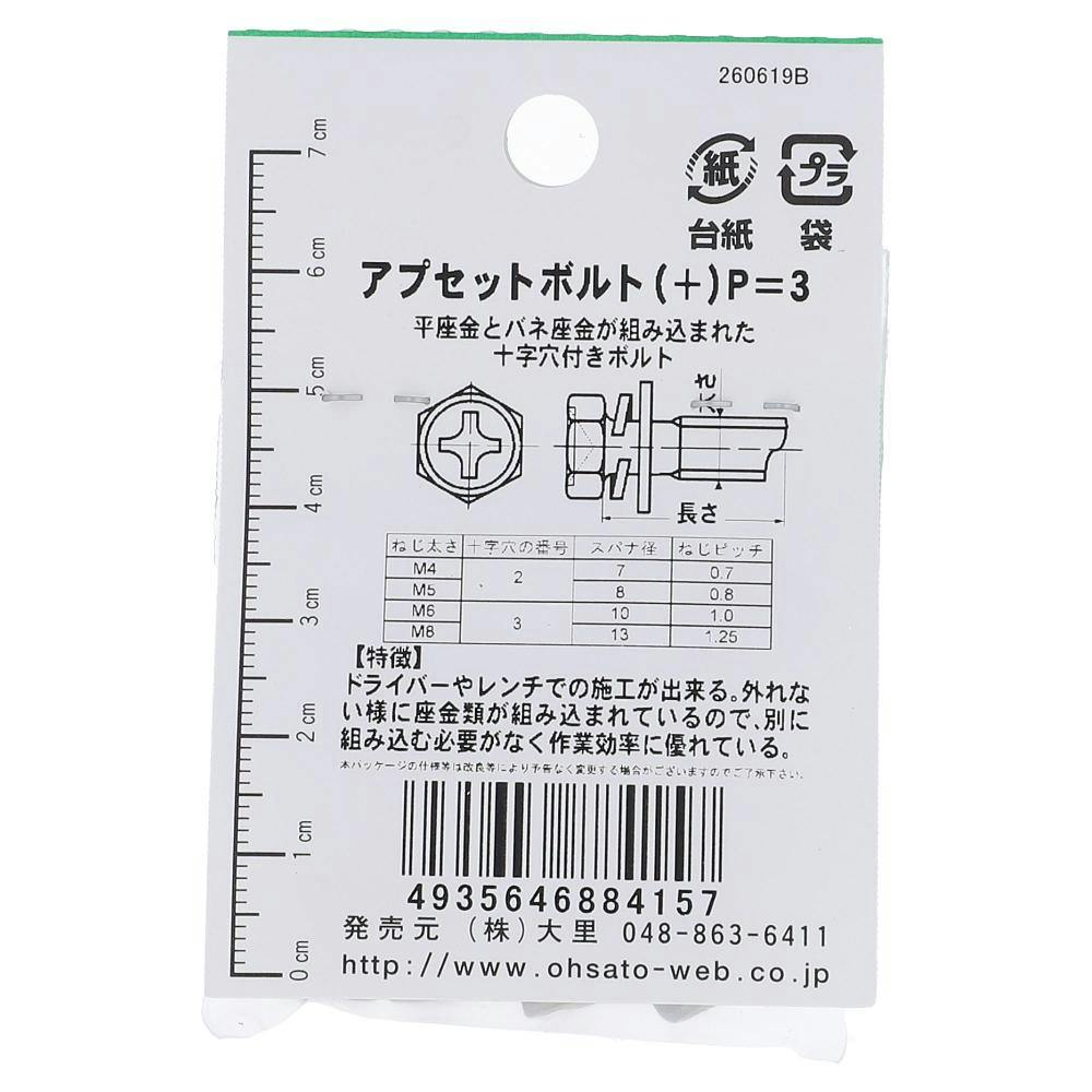 ●平座金とばね座金が組み込まれた十字穴付ボルト ●座金類を別に組み込む必要がないので作業性に優れる ●スパナとドライバーどちらでの施工可能