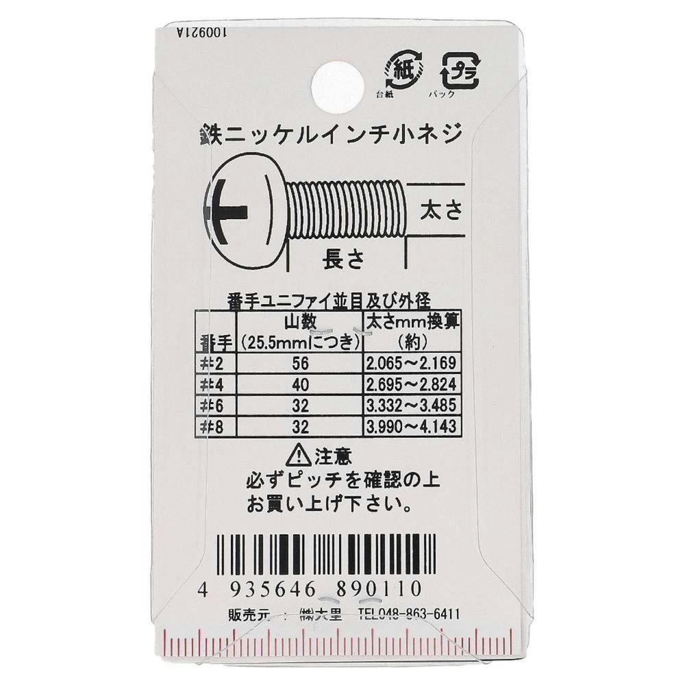 • インチ小ねじ なべ頭 鉄/ニッケルメッキ PC-011 UNC #6×10mm 10本入 小袋