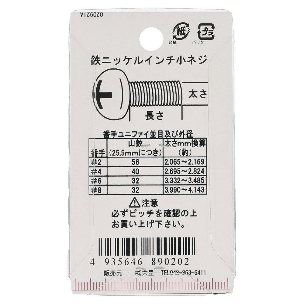 • インチ小ねじ なべ頭 鉄/ニッケルメッキ PC-020 UNC #8×20mm 10本入 小袋