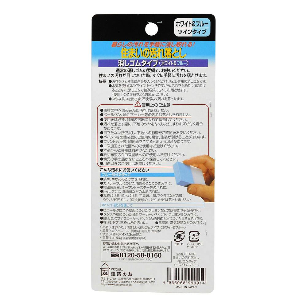 通常の消しゴムの要領でお使い下さい。住まいの汚れが目についた時、すぐに手軽に汚れを落とせます。
