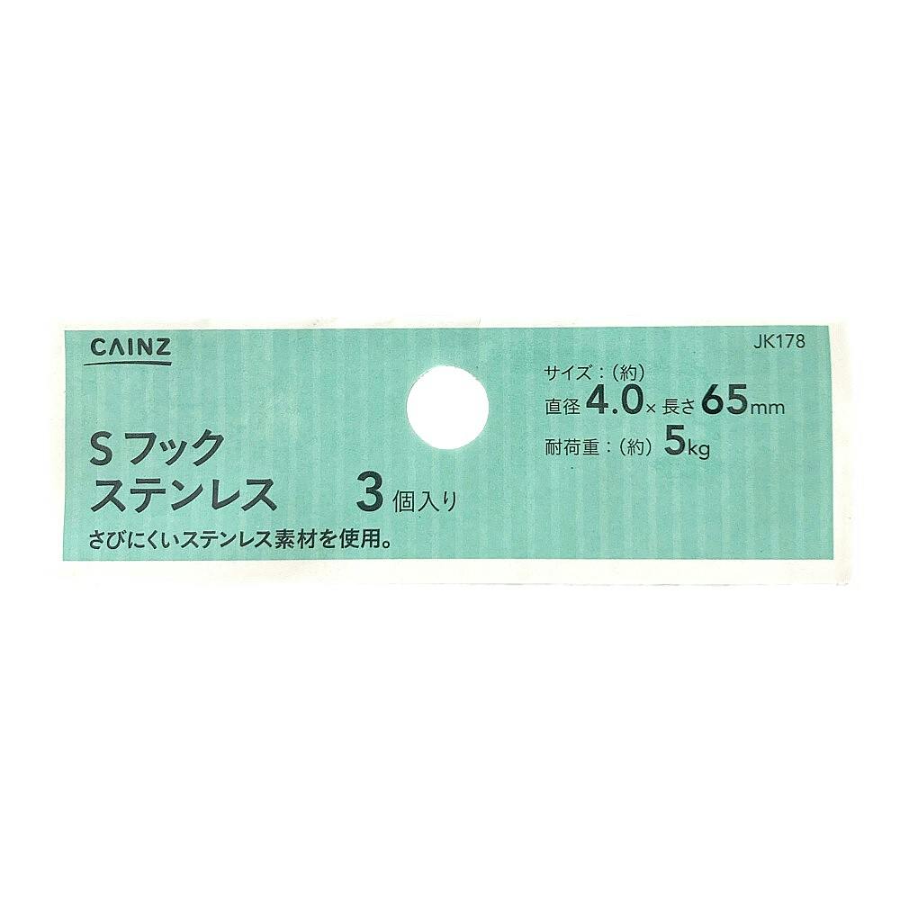 カインズ Sフック ステンレス JK178 直径4.0×長さ65mm 3個入り