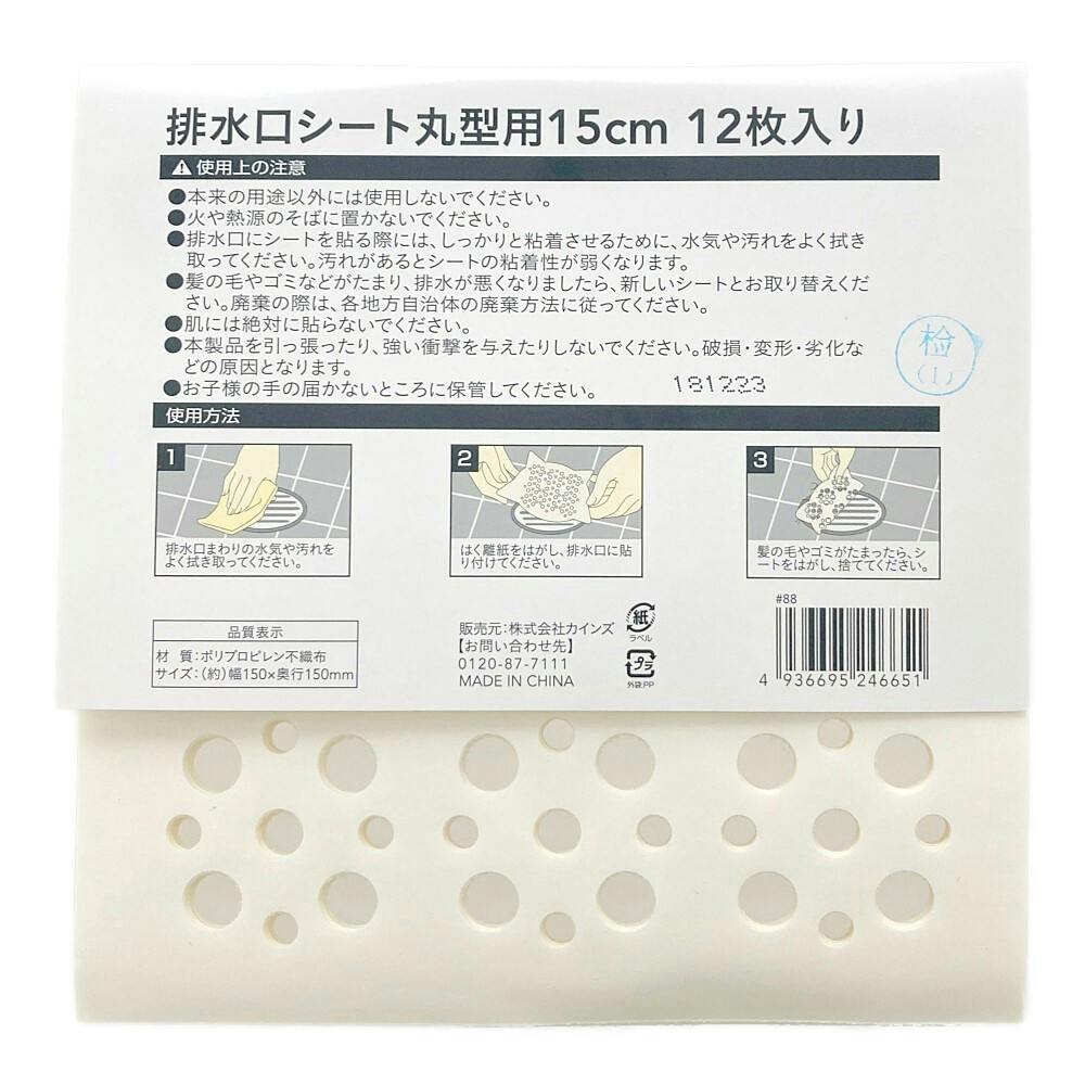 排水口シート 丸型用 15cm 12枚入り HS12