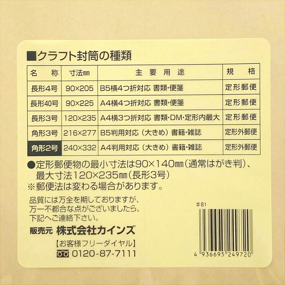 クラフト封筒 角形2号 100枚(70g紙)