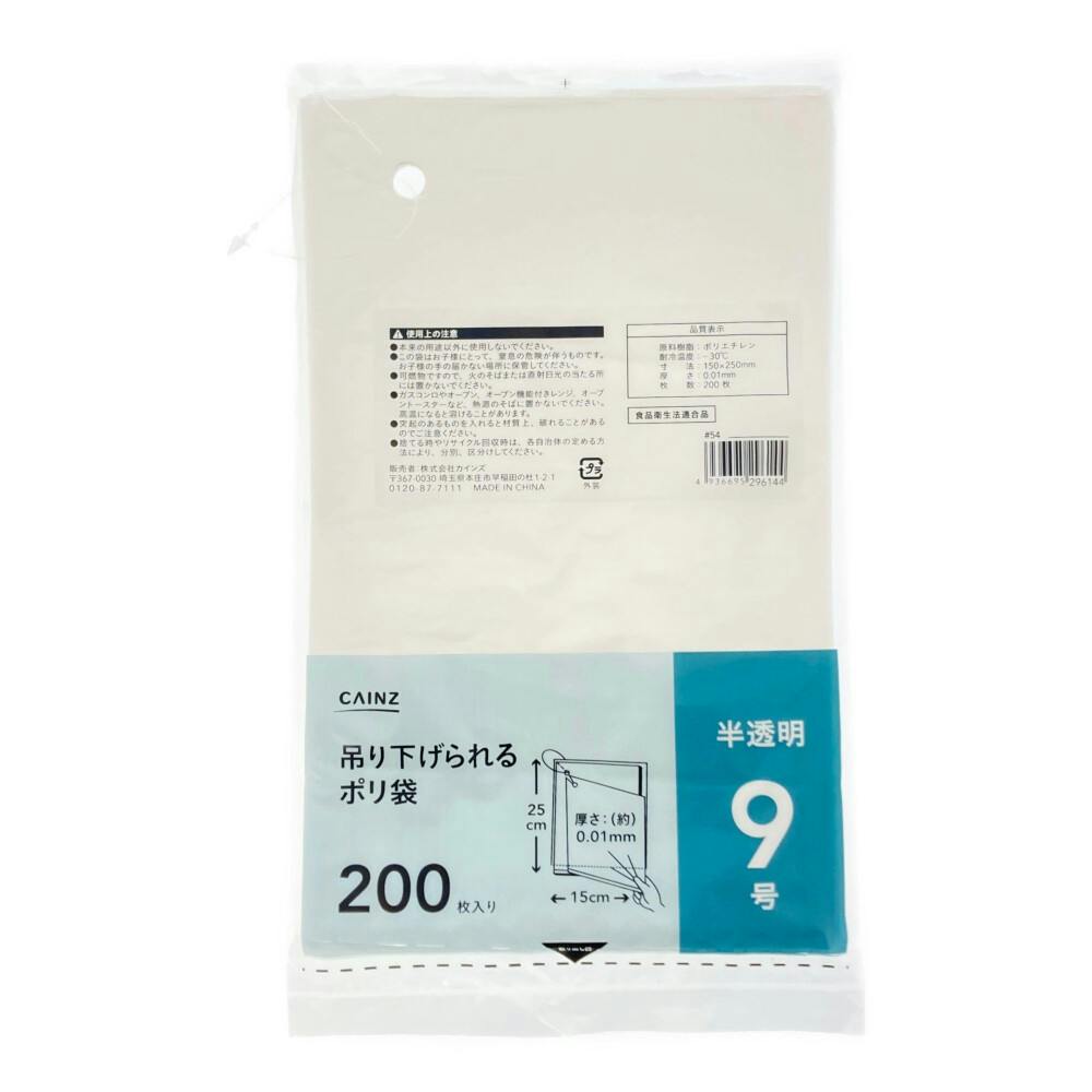 吊り下げられるポリ袋 半透明 9号 200枚入