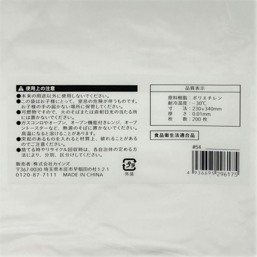 ●本来の用途以外に使用しないでください。●この袋はお子様にとって、窒息の危険が伴うものです。お子様の手の届かない場所に保管してください。