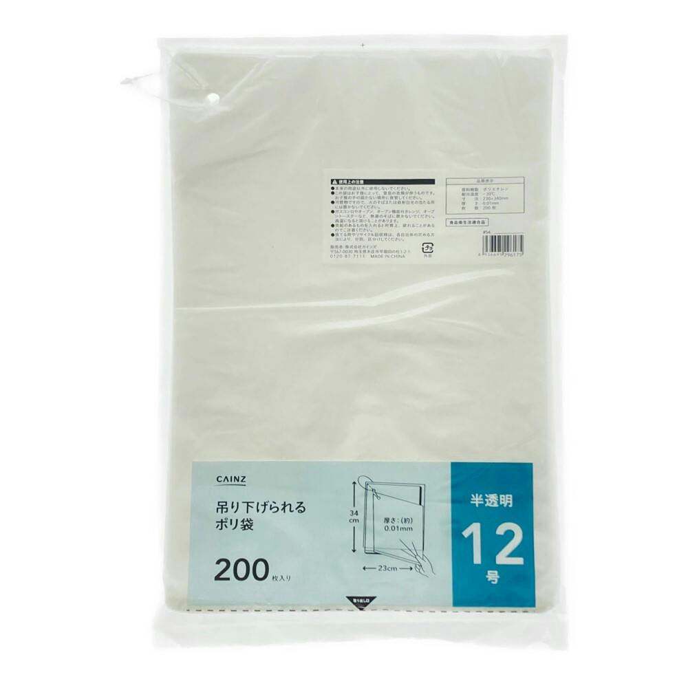 • 吊り下げられるポリ袋 半透明 12号 200枚入